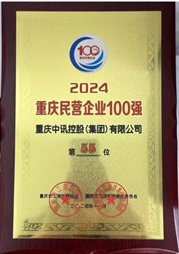 重慶中訊控股(集團(tuán))有限公司再次榮膺“2024重慶民營(yíng)企業(yè)100強(qiáng)”稱號(hào),名列民企100強(qiáng)55位!